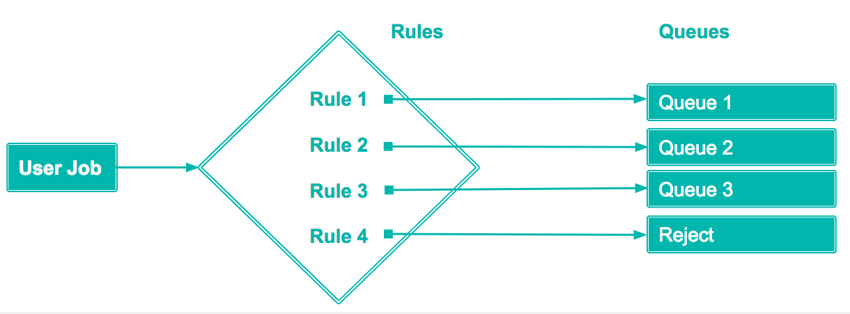The Rule's conditions that a job query matches, determines which queue the job query is sent to.