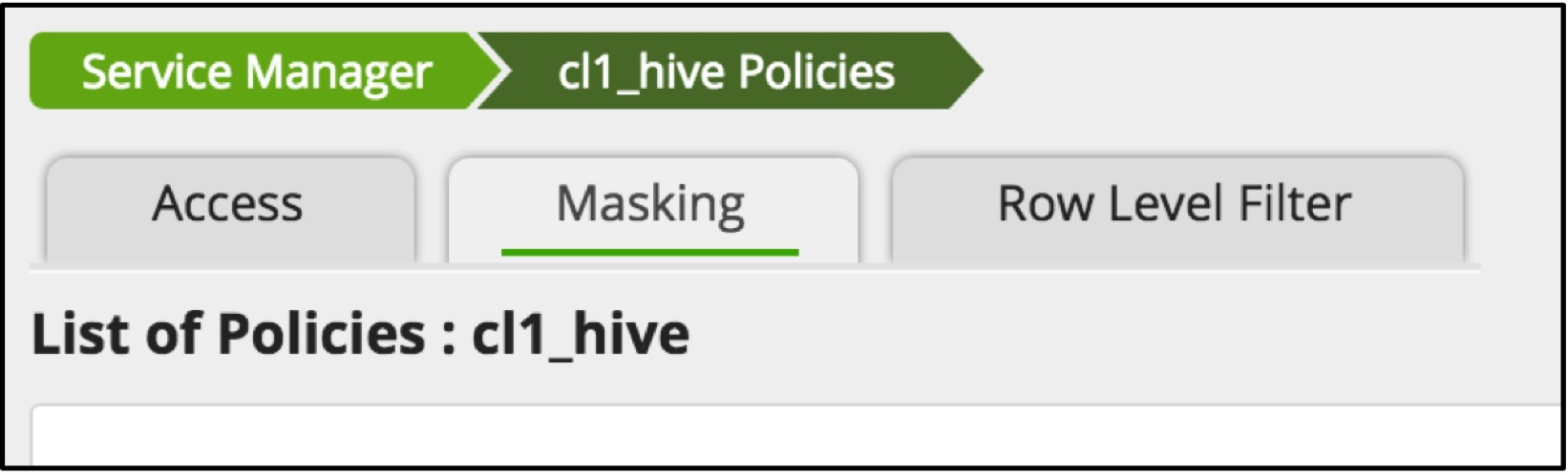 - From the Apache Ranger console, navigate to the Serivce Manager page, and then select the desired Hive Service.