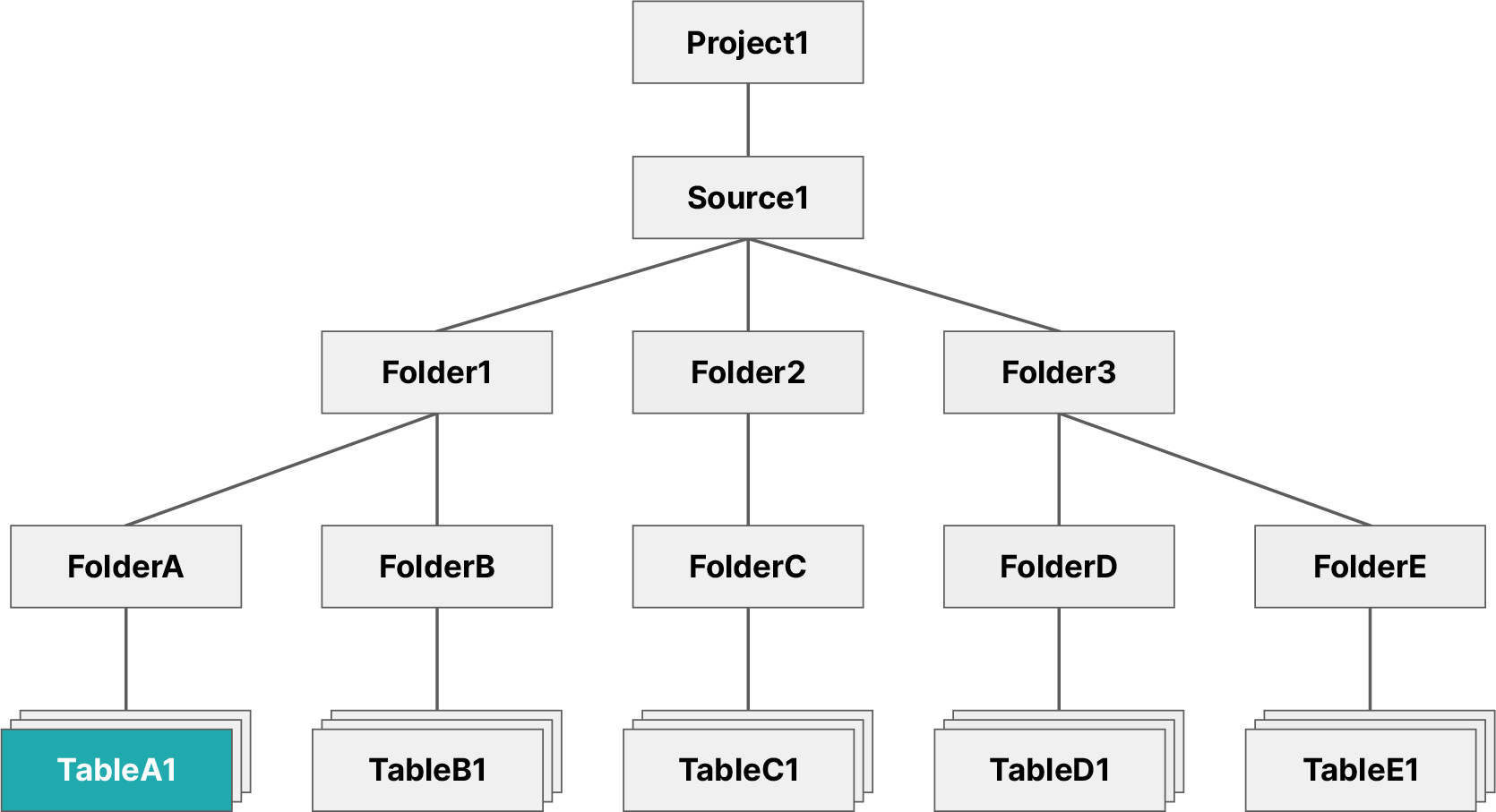 This restricts user1 so that they may only access the TableA1 table, not any other datasets contained in the same folder. However, user1 may still create views based on TableA1.