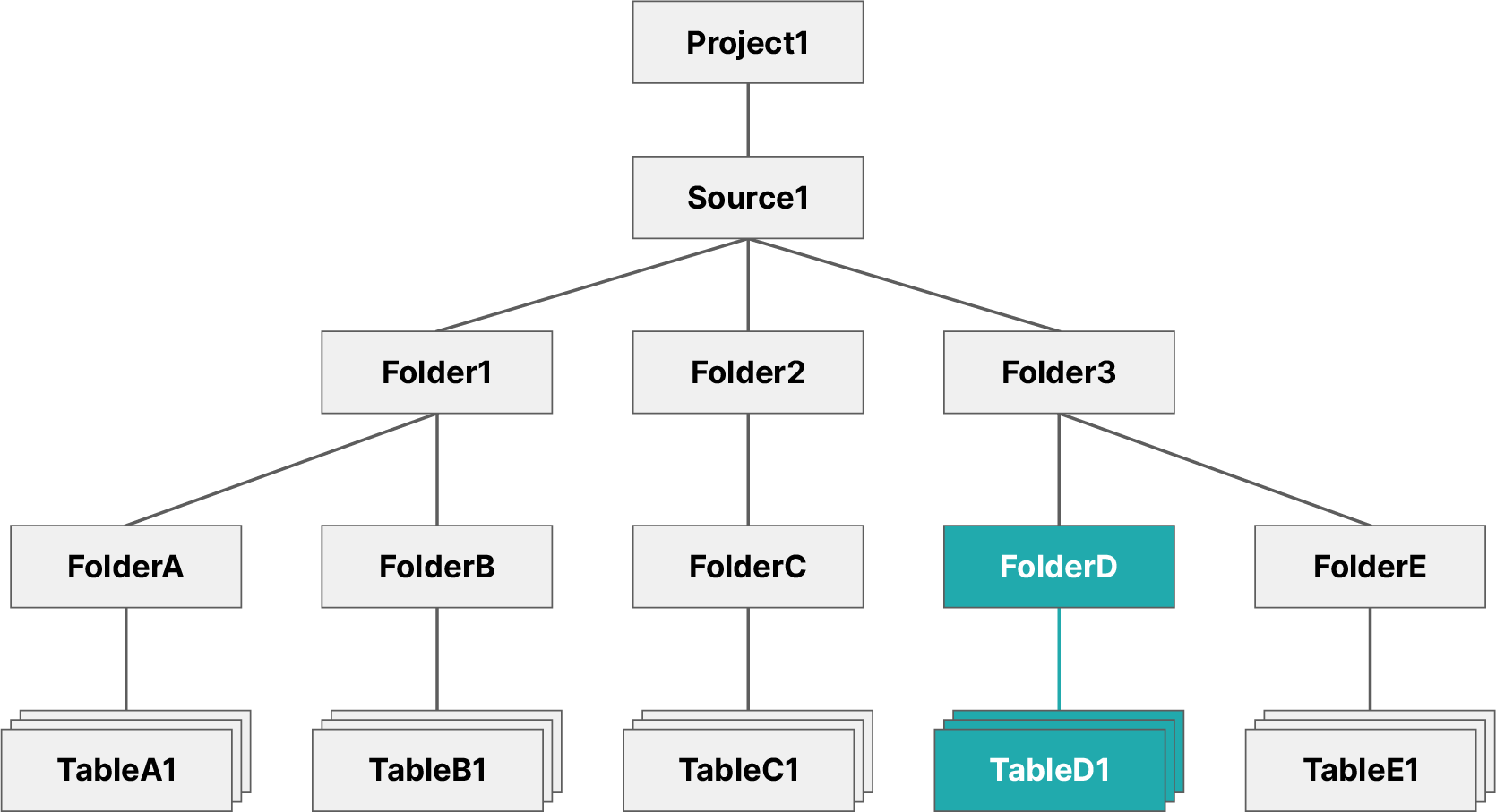You have a specific user that needs access to all datasets in a specific folder, but they do not require privileges for the folders containing these tables. You would then execute the following command from the SQL Editor: