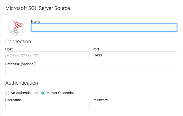 No authenticationMaster Authentication.- Username -- SQL Server user name.